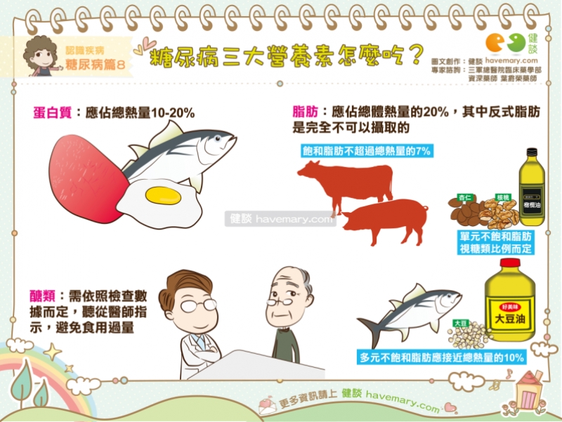 醣類:需依照檢查數據而定,聽從醫師指示,避免食用過量。