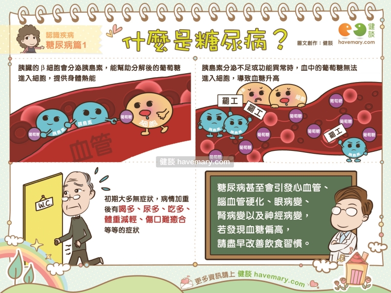 糖尿病是讓人容易忽略的慢性病,若不注意血糖狀況,可能會帶來的併發症喔!今天Mary要先教大家認識什麼是糖尿病,初期又有什麼徵兆呢?