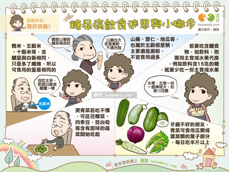 若要吃含醣食物,如飲料,則需用主食或水果代換,例如飲料含15克的糖,就要少吃一份主食或水果。