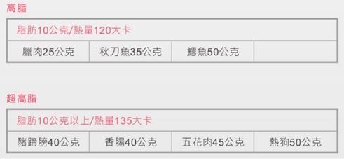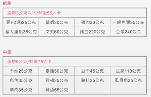 依油脂含量不同分以下四類:(每份皆含蛋白質7公克)