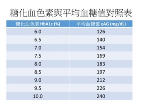 請參考下表,看看你過去的血糖平均值是多少呢?