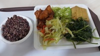 自己得了糖尿病才開始認識這個疾病,原來還有分型。也因為它才開始認識六大食物營養。三餐飲食儘量均衡營養,除非外出旅行,每天早餐都自己在家準備,一大盤生菜(偶爾搭配小黃瓜、彩椒)、二片全麥土司、無糖豆漿和幾顆堅果。中餐晚餐外食也儘量找自助餐,二~三樣青菜,豆腐、雞肉、小碗五穀飯。如果吃麵食,會點個燙青菜,配個小菜(豆干、魯蛋)。