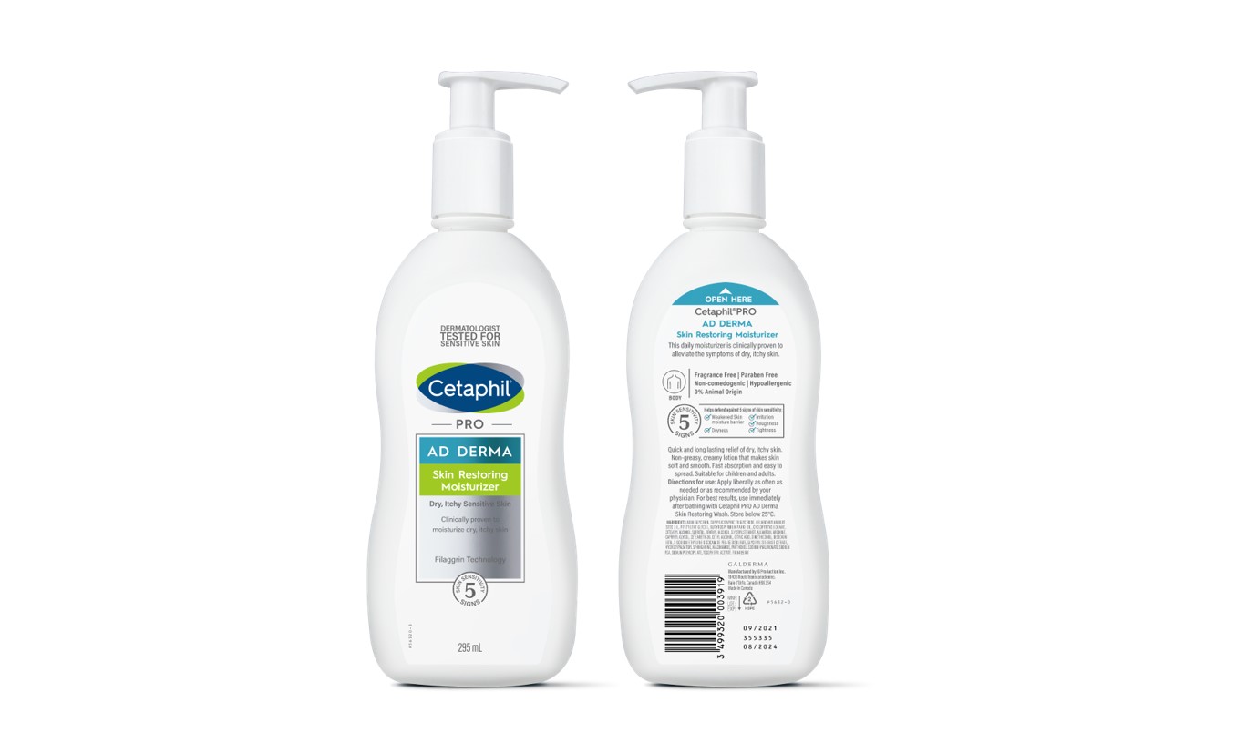AD乳液可緩解搔癢、受刺激的皮膚,並隨著時間的推移提高皮膚保持水度
