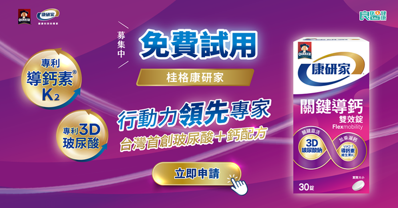 【桂格康研家】關鍵導鈣雙效錠主打3D口服玻尿酸用吃的全身滋潤,以及國外行動力保養經典成分:鈣+維他命D+維他命K2,一錠雙效給你想要保養行動力!詳細體驗內容 -